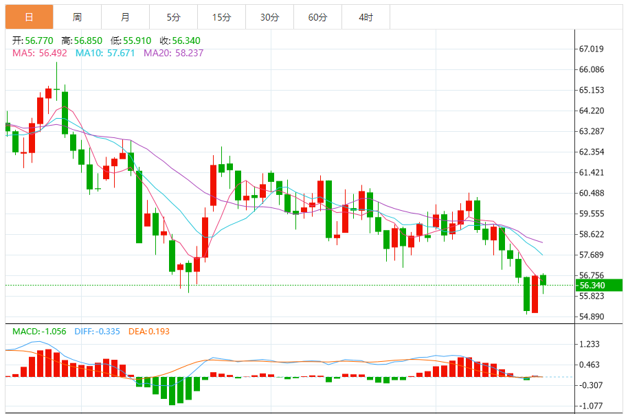 1月交割的WTI原油价格上涨1.2%,结算价每桶55.94美元;