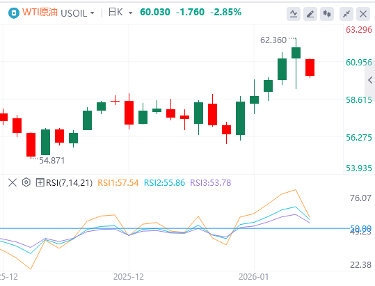 在伊朗持续紧张局势下,WTI价格略微上涨。交易员将密切关注围绕伊朗内乱的最新地缘政治发展。截至目前,WTI原油报价60.03美元,Brent原油报价64.56美元。
