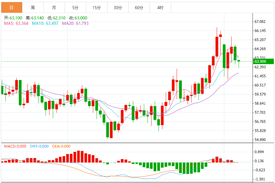 3月WTI原油在纽约市场下跌2.8%,结算价每桶63.29美元。