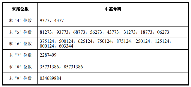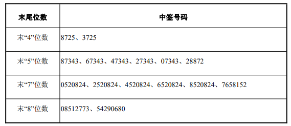 中签号码如下: