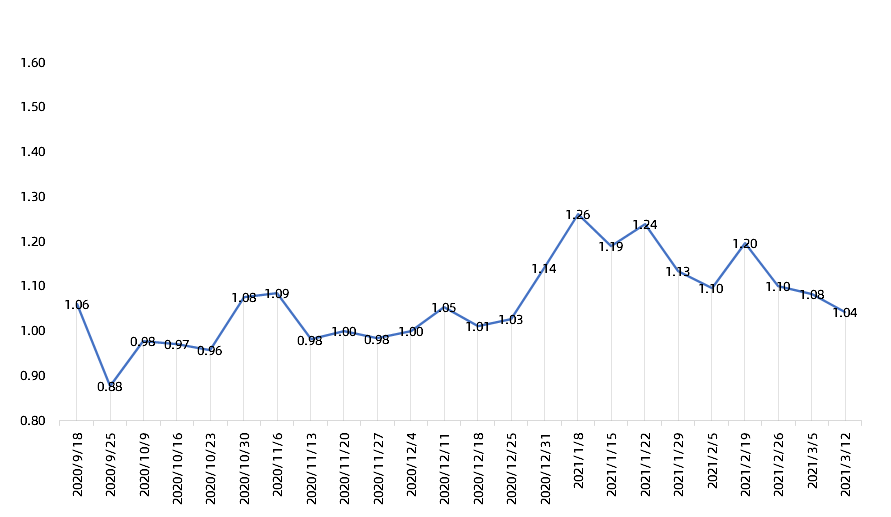 上周A股投资者情绪继续小幅回落。上周五A股投资者情绪指数收于1.0439,较3月5日下降0.0395。