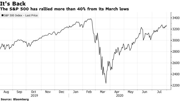 在今年2月下旬至3月下旬期间累计下挫逾30%之后,标普500指数已反弹至距历史高点不到5%的水平。以科技股为主的纳斯达克综合指数表现更佳,近几周来屡创新高。这一切似乎与新冠疫情危机对企业利润造成的冲击有点不协调,但有一种解释是,投资者希望把当前的困境放到一边,期待恢复到正常状态。