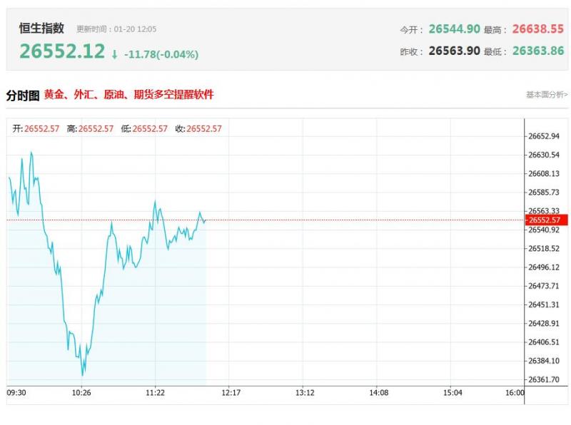 港股午评:恒生科技指数跌0.66%,恒生指数跌0.04%