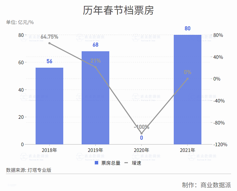 观影需求高涨带来的两大直观影响是,春节档票房的水涨船高与票房的飙升。