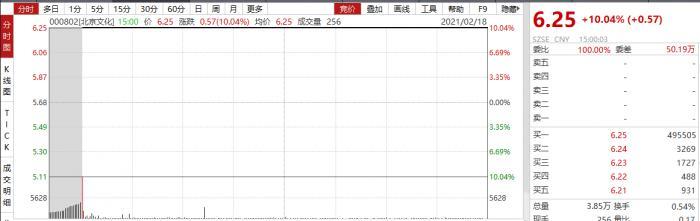 据悉,尽管麻烦缠身,但在春节档期间,北京文化(000802.SZ)重拾“爆款发动机”的名号,押中《你好,李焕英》让公司获益不少。北京文化在2月18日牛年开市首日便取得涨停,早盘一度封单超100万手。业内人士预计北京文化有望借助《你好,李焕英》获得3个涨停板,不过后续需注意追高风险。